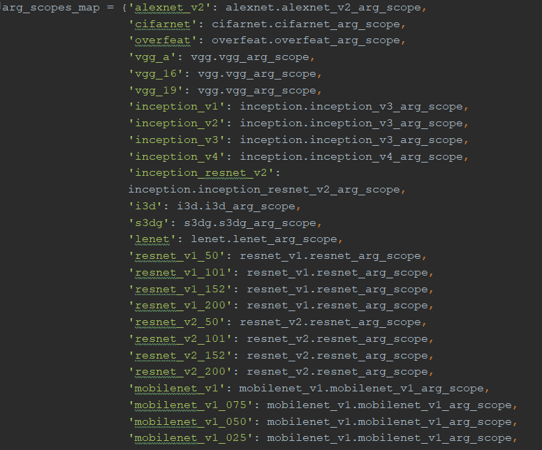 텐서플로우에서 변수의 이름을 한정하기 위해 tf.name_scope와 tf.variable_scope를 제공한다. 또한 TF-slim에서는 중복되는 코드를 제거하기 위한 silm.arg_scope를 제공한다. slim.arg_scope를 사용하면 오퍼레이션마다 중복되는 인자값들을 공통화 할 수 있어서 코드가 간소화된다.
