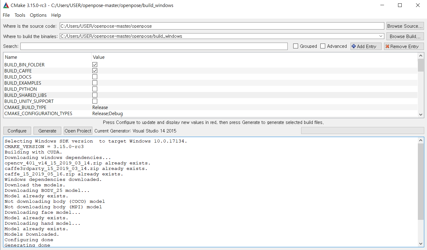 openpose 설치한 폴더를 다음과같이 설정해주고, build_windows는 내가 만들어도 되고, 없는데 configure누르면 만들까요? 라고 물어본다 .