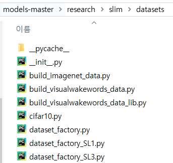 datasets폴더를 나와 다시 slim폴더로 돌아가서 이 코드를 고쳐줘야 하는데, 여기선 바꿀 것이 많다.